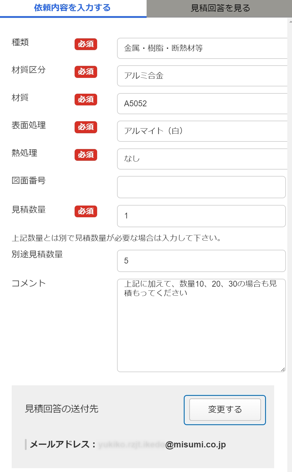 件名:【ミスミ】お見積り依頼内容の問合せ(見積管理番号:xxxx-xxxxJ)